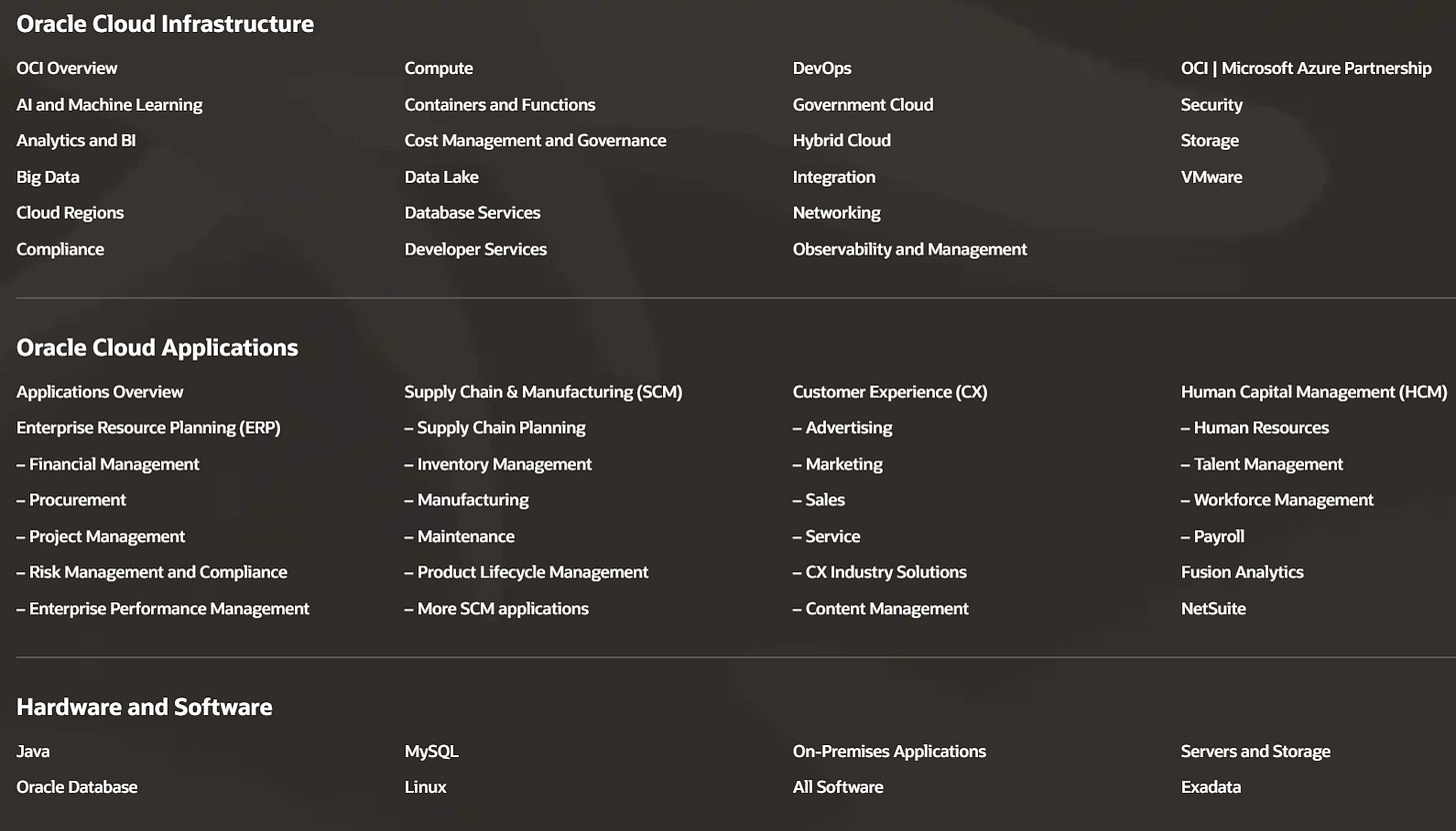If you have been in or around the software business, you know that Oracle, the enterprise software company, had its beginning in the relational database business. The big hitter in this segment, at the time, was IBM (surprise) with its DB2 product. Look at Oracle now. Their current focus is enterprise software, delivered through what we call the cloud. Yes, they still manufacture relational database software, and look where it is in their product listing: the bottom.